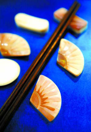 用貝殼制作筷托比較環(huán)保,也很有創(chuàng)意。采用貝殼本身的紋理打磨成扇面形狀,而不是壓碎成粉再成型,因此牢固度和色澤都非常好,既美觀也實(shí)用,而且清洗起來更是容易。