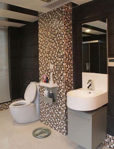 享受另類親密關(guān)系的夫妻,通常是比較理性的,因此黑色是適合的衛(wèi)浴間主色調(diào)。衛(wèi)浴間不需要過多的裝飾,可以適當采用懸掛軟簾或者樹屏風(fēng)的隔斷方法,保持相互之間的隱秘感。燈光除去主照明部分, 還需要考慮每個區(qū)域的照明是否舒適實用。特別是浴室鏡上方的燈,應(yīng)安裝可調(diào)光式的。