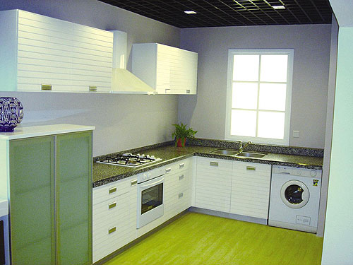 缺點:視覺感較硬,給人冷冰冰的感覺。在櫥柜臺面的各轉角部位和各接合部同樣缺乏合理有效的處理手段。臺面一旦被利器劃傷就會留下無法回復的痕跡。