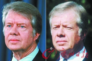 卡特總統(tǒng)就職前(左)與離任后對(duì)比。