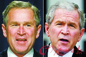 愁白頭的例子,在每位美國(guó)總統(tǒng)的身上都發(fā)生過(guò)??肆诸D剛進(jìn)入白宮時(shí),還有一半的頭發(fā)是棕色的,但兩年之后他已經(jīng)變成“銀發(fā)老頭”;小布什剛?cè)氚讓m時(shí),頭發(fā)還是“鹽和胡椒”,好像一眨眼間全變成“鹽”了。當(dāng)然,奧巴馬當(dāng)總統(tǒng)以來(lái),他的頭發(fā)顏色變化更快。