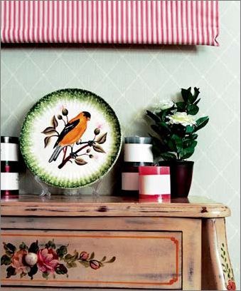 窗下的空間雖只是家中小小一隅,細(xì)心裝扮,也能演繹出不同風(fēng)景。生活源于細(xì)節(jié),而細(xì)節(jié)源于用心。 布置窗的時(shí)候,不僅要注意色彩和諧,也要講究風(fēng)格的統(tǒng)一。梳妝臺(tái)上的手繪玫瑰圖案跟粉色條紋棉布窗簾在色彩上形成和諧呼應(yīng),手繪瓷盤典雅而不失活潑,為點(diǎn)睛之筆,烘托出一派英式鄉(xiāng)村風(fēng)格,與室內(nèi)整體格調(diào)完美統(tǒng)一。餐廳的窗下,最適合布置成這樣隨意溫馨的小景。