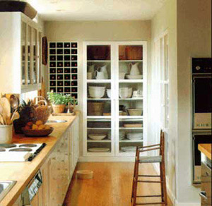 如果廚房不用來做飯,廚房的設(shè)計(jì)風(fēng)格就要引領(lǐng)整體家居環(huán)境,那么廚房就一定要設(shè)計(jì)成開放式。把廚房打開,才會融入到整體空間之中,使客廳更敞亮。如今的廚房家具已經(jīng)不只是幾個簡單的柜體組合了,它可以變幻出各種造型,廚房家具完全可以勝任客廳家具的職能與款式,甚至可以有更多的選擇,比如電視柜,可以用廚房的門板做成,華麗的烤漆或者穩(wěn)重的實(shí)木,一點(diǎn)也不遜色于市場上板式家具;用人造大理石臺面做成的島式吧臺,是今年盛行的設(shè)計(jì)形式,用在這種廚房中,它的作用就更大了,因?yàn)闃O少在家吃正餐,那么這個吧臺就成了早餐的操作臺與早餐桌,同時也可以成為客廳里的一個中心點(diǎn),放兩把吧椅,一邊是柜體,一邊是電視柜,閑暇時,泡杯咖啡,看看電視,安逸的小資生活就呈現(xiàn)了。