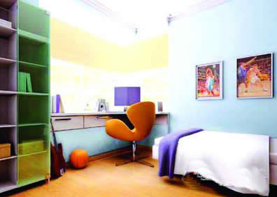 飄窗可以變成“百變”書(shū)臺(tái),你相信嗎?在飄窗臺(tái)面量體定做出高20—40厘米的書(shū)桌臺(tái)面,這樣既“省”掉了桌子腳,又節(jié)約了用料,“偷 ”出了意想不到的空間。再把它格成幾個(gè)抽屜,能裝下不少零碎東西呢。另外,還可以配合整體的書(shū)房設(shè)計(jì),在貼著飄窗的拐角處打造一系列書(shū)房設(shè)計(jì),比如電腦桌、書(shū)架、書(shū)柜……完工后,一個(gè)漂亮整潔又寬敞的書(shū)房就屬于你了。當(dāng)然,為了讓電腦、臺(tái)燈這些必須用電的家伙不需要橫穿室內(nèi)去接電,切記裝修時(shí)一定要預(yù)先在這個(gè)位置將線路埋好。