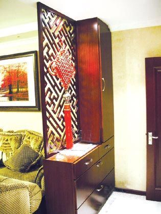 設(shè)玄關(guān)為了起裝飾作用,這里是客人從繁雜的外界進(jìn)入這個(gè)家庭的最初感覺(jué)??梢哉f(shuō),玄關(guān)設(shè)計(jì)是設(shè)計(jì)師整體設(shè)計(jì)思想的濃縮,它在房間裝飾中起到畫龍點(diǎn)睛的作用,能使客人一進(jìn)門就有眼睛一亮的感覺(jué)??剂康綄?shí)用及預(yù)算,設(shè)計(jì)師建議用鞋柜代替玄關(guān)。