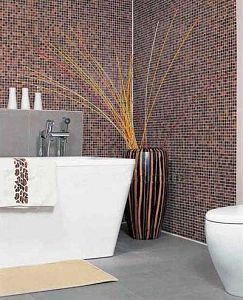 棕色給人一種沉穩(wěn)、高貴之感,大面積的棕色馬賽克和造型硬朗的浴具搭配,營(yíng)造出平穩(wěn)卻不乏生動(dòng)的空間。以下面的例子為榜樣,現(xiàn)在就拆解棕調(diào)衛(wèi)浴的打造招數(shù)! 勿忘的點(diǎn)睛之筆——方便美觀的裝飾品:在整體氣氛盈滿的空間里,偶爾有角落里的一點(diǎn)亮色突然點(diǎn)亮了整個(gè)空間。純白色的衛(wèi)浴用品與大體量木制大花瓶的古舊氣息,在此發(fā)揮了這種營(yíng)造“低調(diào)”浪漫的奇妙效果。