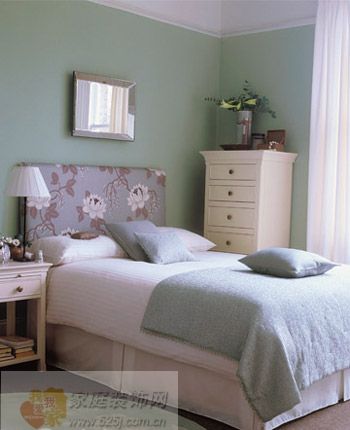 灰綠色的墻面清新宜人,墻上的銀色像框相得益彰。