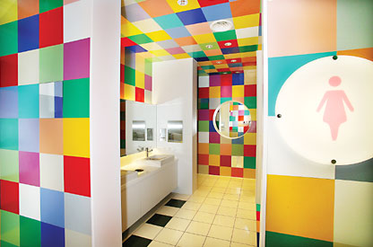 臺**中中友百貨公司推出的十三套主題盥洗設(shè)備,從普普藝術(shù)到巴洛克風(fēng)格,將馬桶及其盥洗空間設(shè)計成叢林或水族世界,每套主題盥洗設(shè)備造價與裝設(shè)費(fèi)用高達(dá)三萬美元以上。