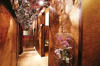 以華麗金屬色調(diào),搭配鮮紅的休憩椅,大片珠簾環(huán)繞中島化妝臺區(qū)域,水晶燈及金色雕框鏡子環(huán)繞其間,呈現(xiàn)金碧輝煌的雍容氣度。值得一提的是,其中一間廁所,針對仕女特別設(shè)置自動沖水的下身盆,如此貼心的設(shè)計,比五星級還五星級,讓如廁也是一種人生的享受!