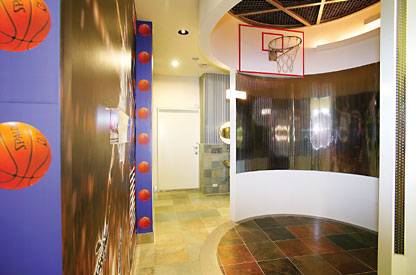 一方淺池,池畔列柱以居禮水晶為陳設(shè),光影水影交錯,映出一室禪意!