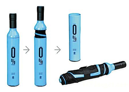 你能想象,那一只只可愛漂亮的酒瓶子是一把雨傘嗎?是的,它就是一把傘。雨傘可以折疊成酒瓶的形狀?沒錯!設(shè)計師將雨傘的折疊方式進行改良設(shè)計,最終折疊的雨傘掛在架子上就像是一個個多彩的小酒瓶。看來你是真被這外表給欺騙了。