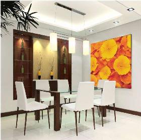要想讓不太寬敞的用餐空間變得亮麗就需要用心選擇餐臺椅和燈具。小面積的餐廳最好選用可折疊的多用餐臺,大面積的餐廳可選用長條的餐臺;如果是與客廳相連的開放式餐廳,因為可以承接來自客廳的照明,因此在餐臺上方加裝一盞吊燈就能充分照明;若為獨立式的餐廳,燈光的充足是必要的,除了頂上的主燈之外,可以加裝壁燈或地燈來補充光源,會營造出更好的用餐氣氛。