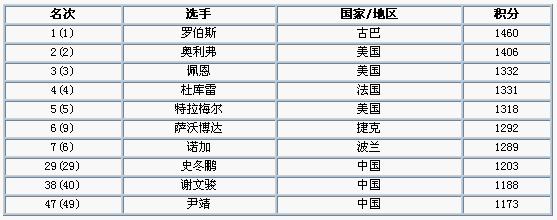 中國(guó)軍團(tuán)中,史冬鵬繼續(xù)保持在第29位,而劉翔師弟謝文駿和尹靖均上升2位,分別排在第38位和第47位。而另一位中國(guó)選手紀(jì)偉排名上升4位,暫列第84。