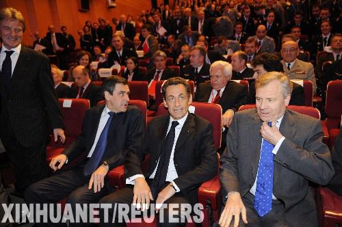 3月11日,北約秘書長(zhǎng)夏侯雅伯、法國(guó)總統(tǒng)薩科齊、總理菲永和外交部長(zhǎng)庫(kù)什內(nèi)(右至左)在巴黎參加法蘭西軍事學(xué)院舉行的“21世紀(jì)的法國(guó)、歐洲防務(wù)和北約”專題研討會(huì)。薩科齊當(dāng)日強(qiáng)調(diào),法國(guó)回歸北約軍事一體化機(jī)構(gòu)符合法國(guó)國(guó)家利益,也有利于加強(qiáng)法國(guó)以及歐洲在北約內(nèi)部的影響力。 新華社/路透