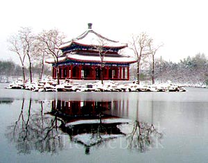 在西山稍為偏北之處就是玉泉山。萬(wàn)壽山也被稱(chēng)為甕山,聳立在海淀西邊大約5里(約2.5公里)的地方,其優(yōu)美的曲線(xiàn)猶如一個(gè)甕,并因而得名。這兩座山脈交錯(cuò)就像男女結(jié)合般調(diào)和。這些都是風(fēng)水堪輿學(xué)上所顯示的興隆象征。