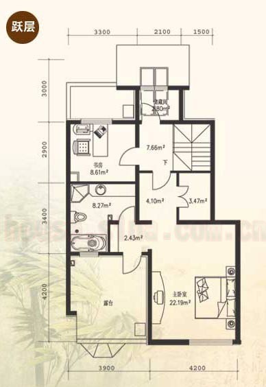2、樓上樓下雙主臥室南向采光,心情與陽光一起開放。