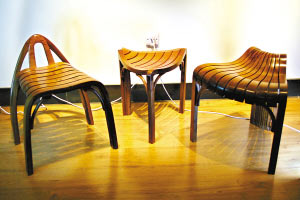 精選理由:家具之所以能打動人,是因其優(yōu)美的造型能引發(fā)人們的情感共鳴。這組名為“花樣年華”的二等獎桌椅系列大膽地運用了曲線結構,體現(xiàn)了強烈的流線感,而且這種流線造型更能夠讓看到它的人產(chǎn)生愉快的心情。設計者選擇了沉穩(wěn)大氣的黑胡桃木來打造這組桌椅,色澤穩(wěn)重,手感細膩,紋理粗獷,在時尚的造型之中透露出一絲古樸的氣息。在工藝上,這組家具采用了中國古典家具的榫卯結構,整個坐具無其他連接組件,渾然天成,而漆制木蠟油則保持了實木的本色,給人一種自然的心靈感受。