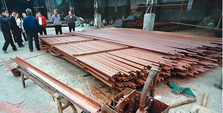 剛剛上過漆的腳手架鋼管及清洗噴漆機(jī)。