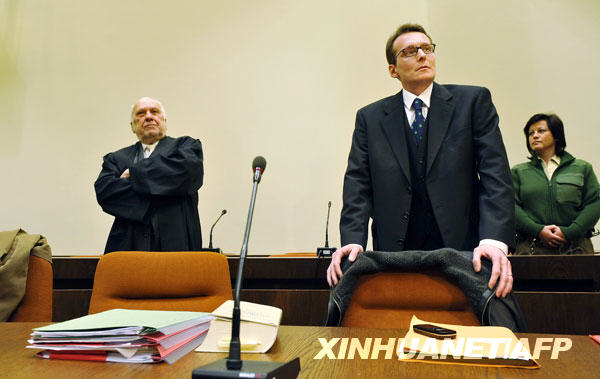 3月9日,瑞士男子黑爾格·斯加爾比(前)在德國(guó)慕尼黑的法庭等待開庭受審。新華社/法新