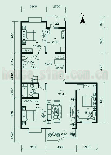 2、動靜分區(qū)不合理,屬于動區(qū)的客廳位于屬于靜區(qū)的兩間臥室之間。容易造成相互干擾。;