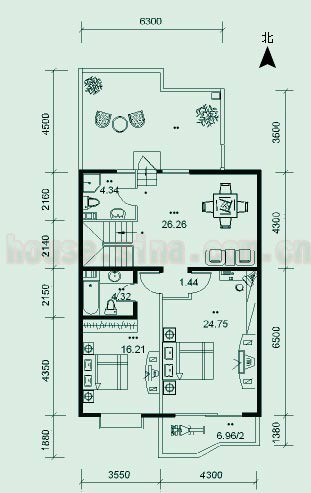 4、各個房間的采光合理;各個功能區(qū)不互相干擾。下層客廳和上層均設(shè)有南向陽臺;且陽臺面積和形狀合理