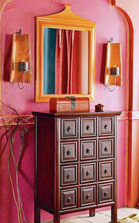 挑選帶鏡子類的家具,如梳妝臺、衣鏡、穿衣鏡,要注意照一照,看看鏡子是否變形走色,檢查一下鏡子后部水銀處是否有內(nèi)襯紙和背板,沒有背板不合格,沒紙也不行,否則會把水銀磨掉。