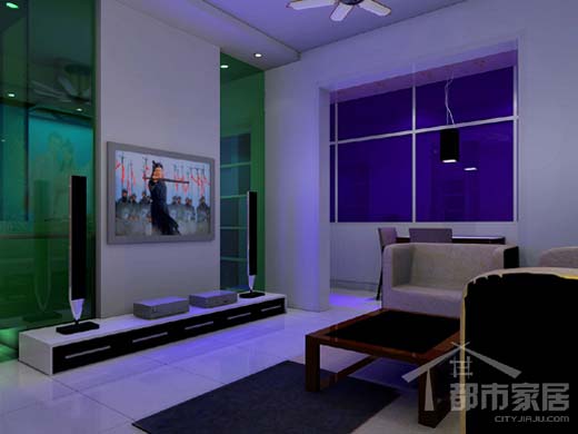 起居室,同樣的冷色系,顯得空間非常男人,畢竟家中是三個“男人”,考慮到“大多數(shù)”人的審美需求,女主人聽從了老公的建議,把起居室打造的非常陽剛。