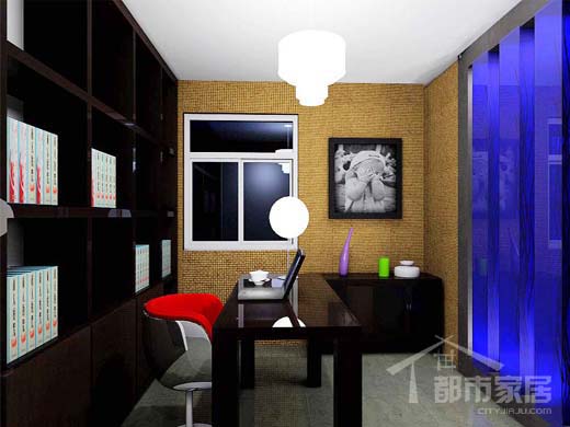 書房是男主人的空間,在大方向的定位上,選擇了頗為深沉的深棕色家具,這樣一來,一種簡約的中式風(fēng)格就躍然于上,配上肌理感覺非常強的壁紙,整個書房有種亦古亦今的感覺。