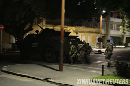 當(dāng)?shù)貢r間16日晚約7時,武裝部隊向位于市中心一座山上的總統(tǒng)府發(fā)起攻擊,首先發(fā)射了兩枚火箭彈,并鳴槍警告總統(tǒng)府守衛(wèi)部隊,隨后用擴音器朝守衛(wèi)部隊喊話,要求他們投降。早已在總統(tǒng)府附近待命的兩輛裝甲車隨即開了過來,撞開了總統(tǒng)府的鐵柵欄門。