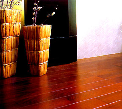 深色調(diào)地板的感染力和表現(xiàn)力很強(qiáng),個(gè)性特征鮮明,如帶紅色調(diào)的地板本身顏色就給人強(qiáng)烈的感覺(jué),如果再將墻壁也用顏色濃的油漆涂刷,就會(huì)顯得不諧調(diào)。但選擇帶有粉色調(diào)的象牙色,與紅茶色地板就會(huì)形成統(tǒng)一感。