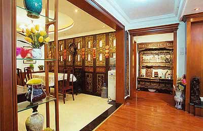 如果獨(dú)立柱柜距離壁不遠(yuǎn),可采用以木板或矮柜把穹與墻壁連成一體。柱壁板可以掛畫或花草來(lái)作裝飾,而矮柜則可令視野通透,增加景深,沒(méi)有沉悶閉塞之感。