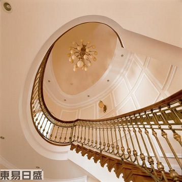 樓梯是別墅中不可或缺的基本元素,在功能上,它承上啟下;在美學(xué)上,它可以有著遞進(jìn)的空間層次美。在風(fēng)格上,它是可以有代表演繹古典風(fēng)格的主要標(biāo)志之一。所以樓梯在本案中是我設(shè)計(jì)的重心之一。在質(zhì)地上,為表現(xiàn)整個居室的沉穩(wěn)內(nèi)斂,我選用了實(shí)木材質(zhì),而選擇亮色——類似于紅檀香色的色彩——則是為了配合整體風(fēng)格的古典氣質(zhì)和光線和諧。