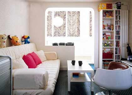 整套居室面積為52平方米,又是老住宅樓中的戶型,但經(jīng)過格局的大膽改造,實(shí)現(xiàn)了居室功能多樣化,空間利用最大化,設(shè)計(jì)巧妙實(shí)用化。為了加大整個(gè)空間的通透感,楊賽文拆掉了客廳與陽臺(tái)之間的墻壁,增大了客廳的面積及采光。而且整個(gè)居室中,除了那道“密室大門”,幾乎很難看到“門”的蹤影。這樣的處理辦法,使原本面積不大的房子,無形間擴(kuò)大了進(jìn)深,視覺上也更加通透、利落。