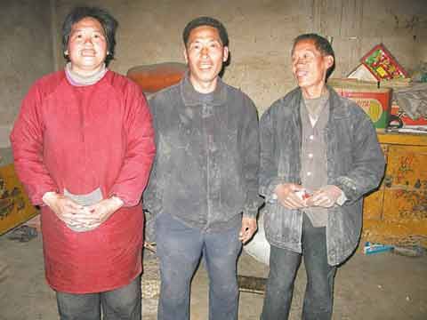 在他們家徒四壁的家里,看到筆者給他們照相,從來(lái)都沒(méi)錢去拍張照片的他們露出了難得的笑容。從右至左依次為:二哥樊銀成、三弟樊貴成、弟媳商玉金。