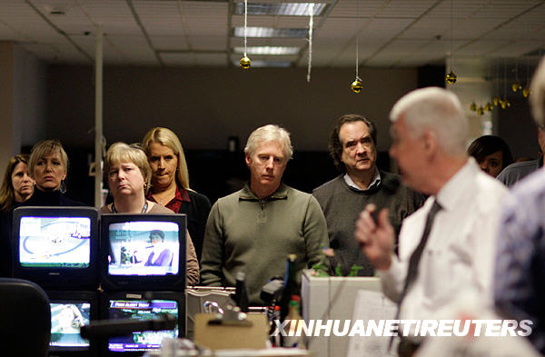3月16日,在美國華盛頓州西雅圖,《西雅圖郵報》發(fā)行人羅杰·奧格爾斯比向工作人員宣布將在17日發(fā)行最后一期紙質(zhì)報紙。新華社/路透