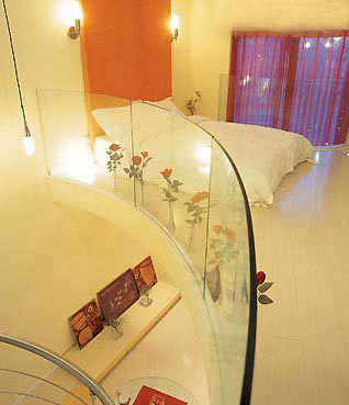 該風(fēng)格講究光、影的變化,大膽的色彩對(duì)比來(lái)裝飾空間,用無(wú)規(guī)則的空間切割來(lái)豐富視覺(jué)。比如故意凹陷的墻面和用鮮艷色面磚拼貼墻面的衛(wèi)生間等。裝修材料上大量運(yùn)用鋼化玻璃做半透明墻面、隔欄等。