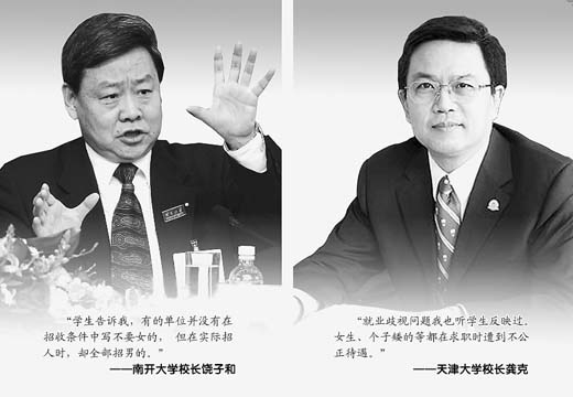 今年兩會期間,全國人大代表、南開大學(xué)校長饒子和特地返校同2009屆畢業(yè)生們開了一場就業(yè)座談會。讓他沒想到的是,在《就業(yè)促進法》實施一年多之后,仍有不少女同學(xué)向他反映就業(yè)歧視問題。當(dāng)天,正好是“三八”國際勞動婦女節(jié)。