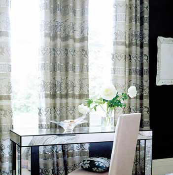 灰黑色條紋窗簾搭配凹凸紋理的黑色壁紙,層次分明。鏡面家具、裝飾品讓黑色墻面有了一些通透感。簡約而略帶復(fù)古圖案的布藝壁紙演繹著上世紀(jì)的優(yōu)雅品位,繁華而不失現(xiàn)代格調(diào)。