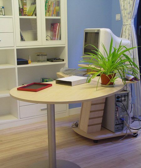 如果你的書房中藏書甚多,那你還得考慮夏天多雨的潮濕環(huán)境給藏書帶來的煩惱。最好的辦法就是把書柜放在向陽面,把書桌放在背陽面,這樣一來,藏書和讀書都不會受到影響。