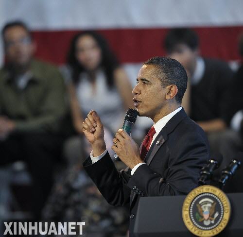 3月19日,美國總統(tǒng)奧巴馬在美國加利福尼亞州洛杉磯一個群眾**上發(fā)表演講,闡述新**的經(jīng)濟政策。分析人士指出,在經(jīng)濟深陷衰退、失業(yè)率節(jié)節(jié)攀升和**對金融機構(gòu)的救援行動受到種種非議之際,奧巴馬迫切希望利用各種與公眾直接面對的機會為其經(jīng)濟議程爭取民意支持。 新華社記者戚恒攝