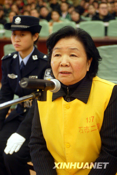 2008年12月31日,三鹿集團(tuán)原董事長(zhǎng)田文華在法庭上受審。 新華社發(fā) 丁立新 攝