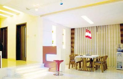 客廳主題顏色確定后,屋子的其它部分色彩也隨之確定。玄關(guān)處一側(cè)為廚房的外墻,用石膏板做成條狀,全部為紫色,在中間裝上落地鏡,既實(shí)用,又能擴(kuò)展空間。另一側(cè)的鞋柜如果用紫色會(huì)顯得沒(méi)有層次,可以用色調(diào)接近的胡桃色,而墻垛則與另一側(cè)相協(xié)調(diào)均為紫色橫條。