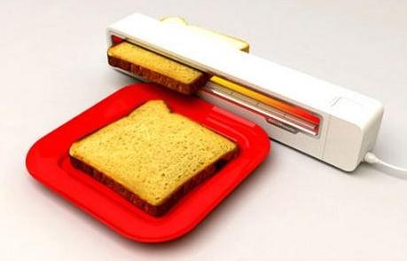 把鬧鐘的外形做成攪拌器的樣子,在杯中放入許多塑料小球。時(shí)間一到,攪拌器自動(dòng)開啟,攪動(dòng)里面的塑料球,發(fā)出刺耳的聲音。多懶惰的懶蟲相信也會被這刺耳的聲音叫醒。 掃描面包 新型烤面包機(jī)