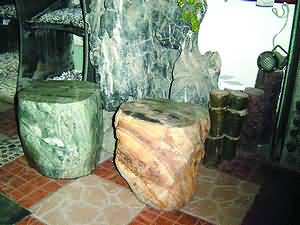 前幾年,裝飾市場里就出現(xiàn)了不少的石頭飾品,大都造型精致,栩栩如生,在此時(shí)石頭已經(jīng)有了與大眾親近的基礎(chǔ)。如被制成杯、盤、筆架、盆景等,有的按生肖被制成龍、狗、兔、雞等工藝品,有的被制成發(fā)財(cái)樹和各種人物肖像、雕塑等,已經(jīng)突破了觀賞范圍,更加生活化和實(shí)用化。這些飾品大都在100~300元之間,大眾比較容易接受。漸漸地,石頭邁開腳步走到家居的方方面面,甚至小角落。從簡單的擺設(shè)飾品到實(shí)實(shí)在在的家具用品,如墻畫、茶幾、花器、燈飾等,人們開始意識(shí)到石頭是一種可塑性很強(qiáng)的材質(zhì),如果賦予它獨(dú)特的文化內(nèi)涵,它在家居業(yè)將更有生命力。