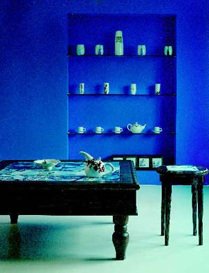青花瓷外表清淡素凈,已有一種不可褻玩之意,而質(zhì)地硬朗,更有一種不從流俗的風(fēng)骨。單件欣賞可,真要與其他家什搭配得妥當(dāng)卻是不易。好就好在它一切淡定自然、自在我心。于是才終于等到那個懂得的人,以及那些沉著的老木。