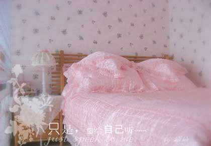 臥室的床品很**,墻紙也是我喜歡的