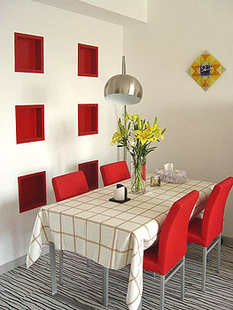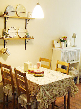 最好以素色為主,如奶白,淡黃,或以白為基色配以能刺激食欲的明亮顏色。若逢年過(guò)節(jié)或好友來(lái)訪,則按時(shí)令和個(gè)人的創(chuàng)意靈感發(fā)揮。注意保持桌布的干凈,有需要可以加一個(gè)防滑墊。貼心貼士:市面上有經(jīng)濟(jì)耐用的PVC桌布,質(zhì)感清新、圖案豐富的純棉桌布和透氣厚實(shí)、有蠟染圖案的亞麻混紡桌布任君選擇。鋪法上,除了常規(guī)的單層法外,還可用雙層法,將顏色較淺或者花紋簡(jiǎn)單的一塊鋪在下面,上層則鋪圖案復(fù)雜、色彩鮮艷的桌布。更可同一色系不同深淺的桌布來(lái)搭配。
