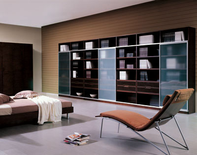 既然書架擺放的位置可隨意性,那么書架的樣貌自然也無需太過拘泥。不規(guī)則分隔是格型書架的初級階段,橫格的間距變化主要是為了擺放不同大小的書籍而考慮的;豎格的交錯排列則不僅可以增加視覺變化,打破普通書架的沉悶,還可以增加大書架的牢度,兼具實用功能;另有升級版本,隔板不再是橫平豎直,各種方向的線條交錯,打破常規(guī),甚至還有設(shè)計如流水一般曲折,可以彎轉(zhuǎn)成一個墻上的圓環(huán)、或順勢環(huán)繞居室四周,書架自身也成為一件造型藝術(shù),同所有家具一樣,關(guān)鍵要看怎么去使用它。