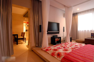 “地臺”使睡眠區(qū)的環(huán)境更為清潔。在擺放床的地域處,裝修出10公分左右高的木質(zhì)“地臺”,相應地選用較低矮的床。其效果是:使睡眠區(qū)的環(huán)境更為清潔;地臺烘托中的床與人更有一種“精品”的藝術美感;尤其是花梨木質(zhì)的地臺還可給人以芬芳的氣息。