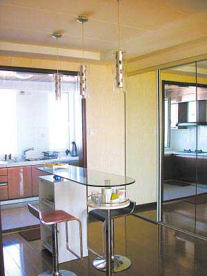 不過,廚房吧臺與客廳、臥室里的吧臺有很大的不同。客廳和臥室是居室的重點(diǎn)區(qū)域,一般都裝飾得非常講究。這里的吧臺更講究和環(huán)境相適應(yīng),造型應(yīng)簡潔明快,具有一定裝飾性,富于生氣,需要盡量避免呆板生硬的設(shè)計(jì)。